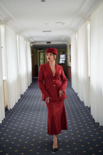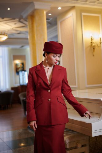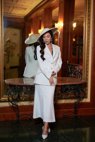 Юбка - годе в длине миди - создает безупречный силуэт. Облегающая верхняя часть подчеркивает талию и бедра, а изящное расклешение к низу - обеспечивает комфорт в повседневной жизни. Эффектно дополняет жакет BONETTA MUSE.