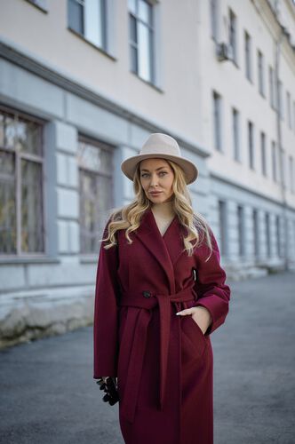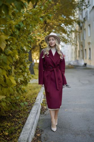 DOROTEYA Пальто S1919 Ворс***, Цвет: Бордовый, Размер: 164-88-96